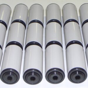 Roulements 6204, joint à double lèvre en nitrile et chicane,bague de frottement en matière plastique rouge, déflecteur et axe en acier.